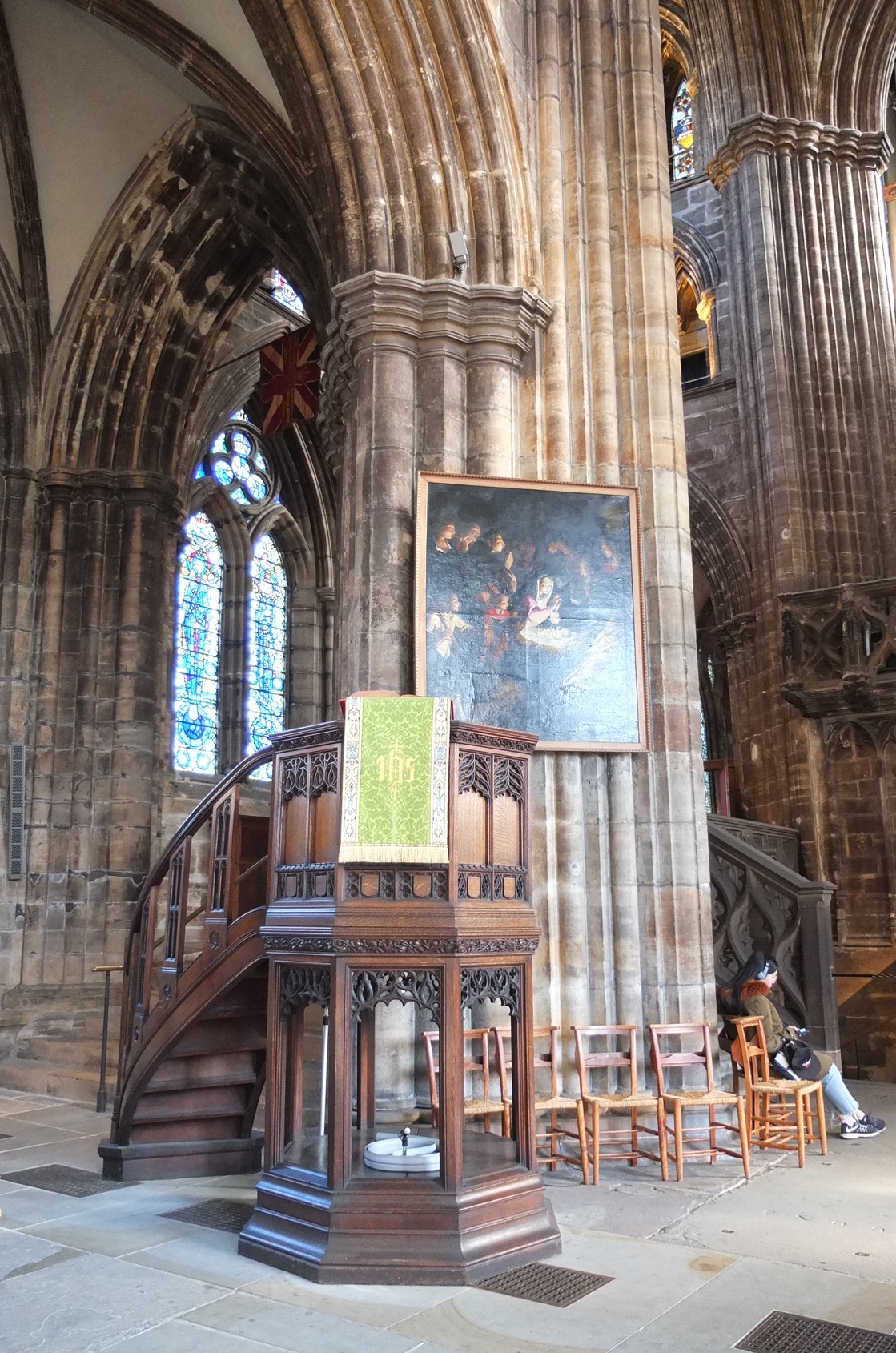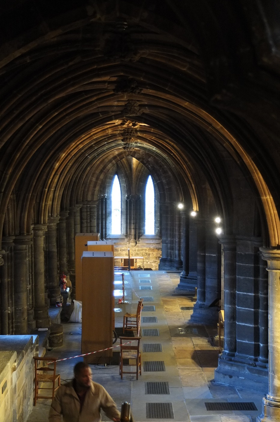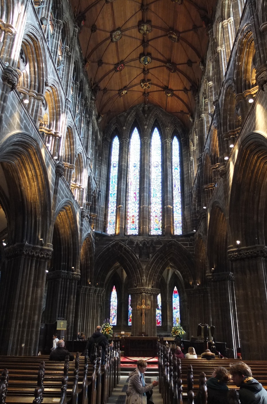 遠くから見ているときはそれほど大きいとは思わなかった。しかし、中に入って見はじめると、とんでもなく大きいことがわかった。グラスゴー大聖堂の紹介をしているネットなどで、これとは反対側の写真や上部から移した写真を見ると納得する。
