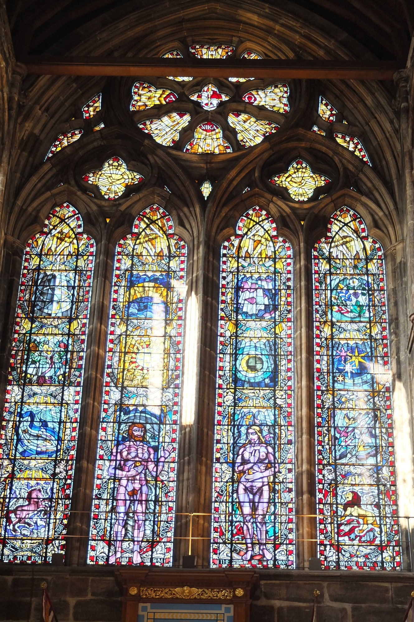 ステンドグラスは、とても古いものから最近のものまでいろいろな年代のものが有る。それぞれデザインが違うが、どれも細部まで美しい。まだステンドグラスになっていない透明ガラスの窓もあり、おそらく、寄付をした人が自分の好きなデザインでステンドグラスを作って入れるんだろうと思う。いったいいかほどか…なんてことを考えてはいけないよねぇ・・・