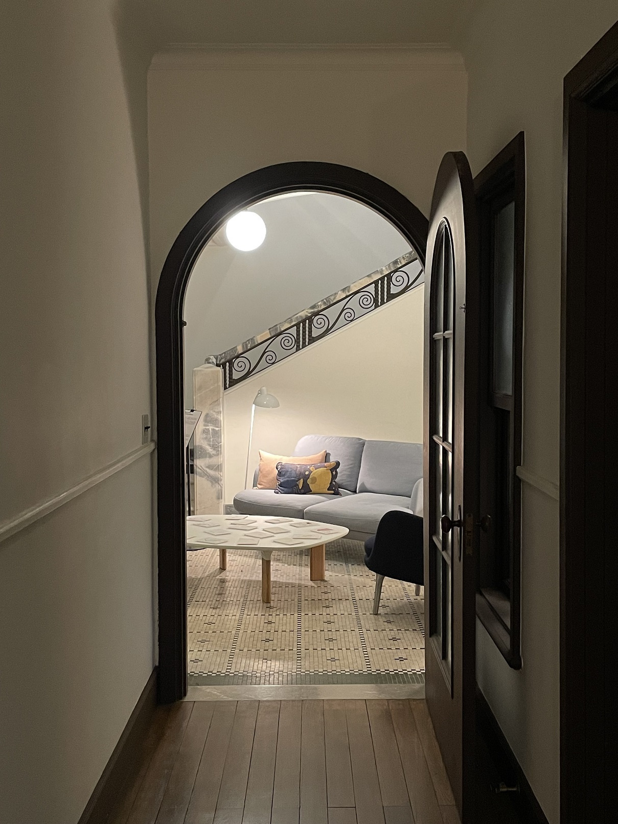 40年くらい前からずっと気になっていたこの建物。近くに住んでいた時に発見し、その時はまだどなたかが住んでいらっしゃったようだった。ほぼ毎日の散歩の途中、この建物を見るたびに、中はどうなっているんだろう、どんな方がお住まいなのかなと思っていた。引っ越した後は、なかなか見る機会が無かったが、近くに用事があって通るたびに、気にしていた。ある時、空き家になっているような気がして、もしや無くなってしまうのではと心配したことがあった。その後、ここがある企業の持ち物になったらしいと聞き、何とか中を見たいものだと思っていた。その機会がやっと来た!