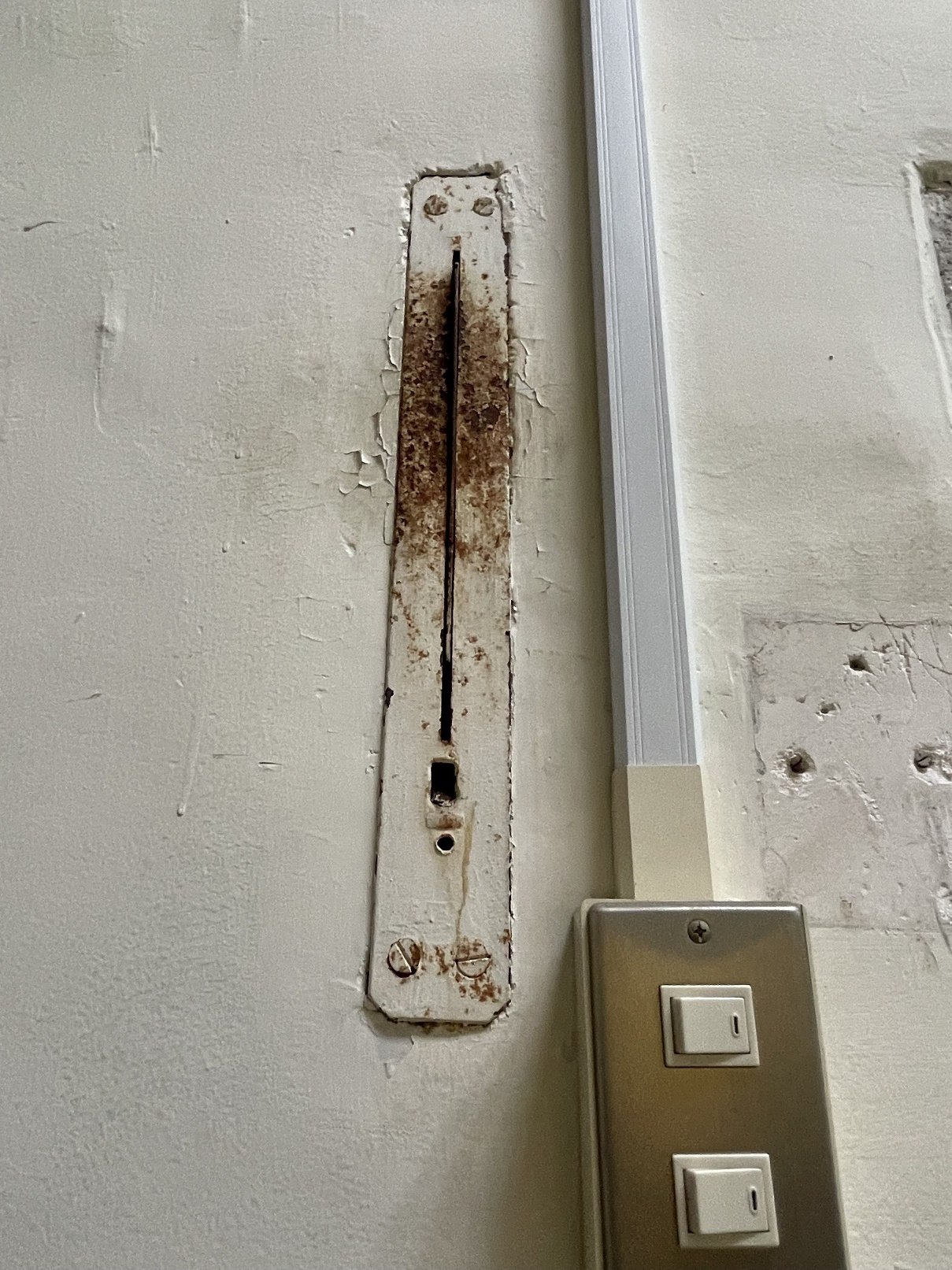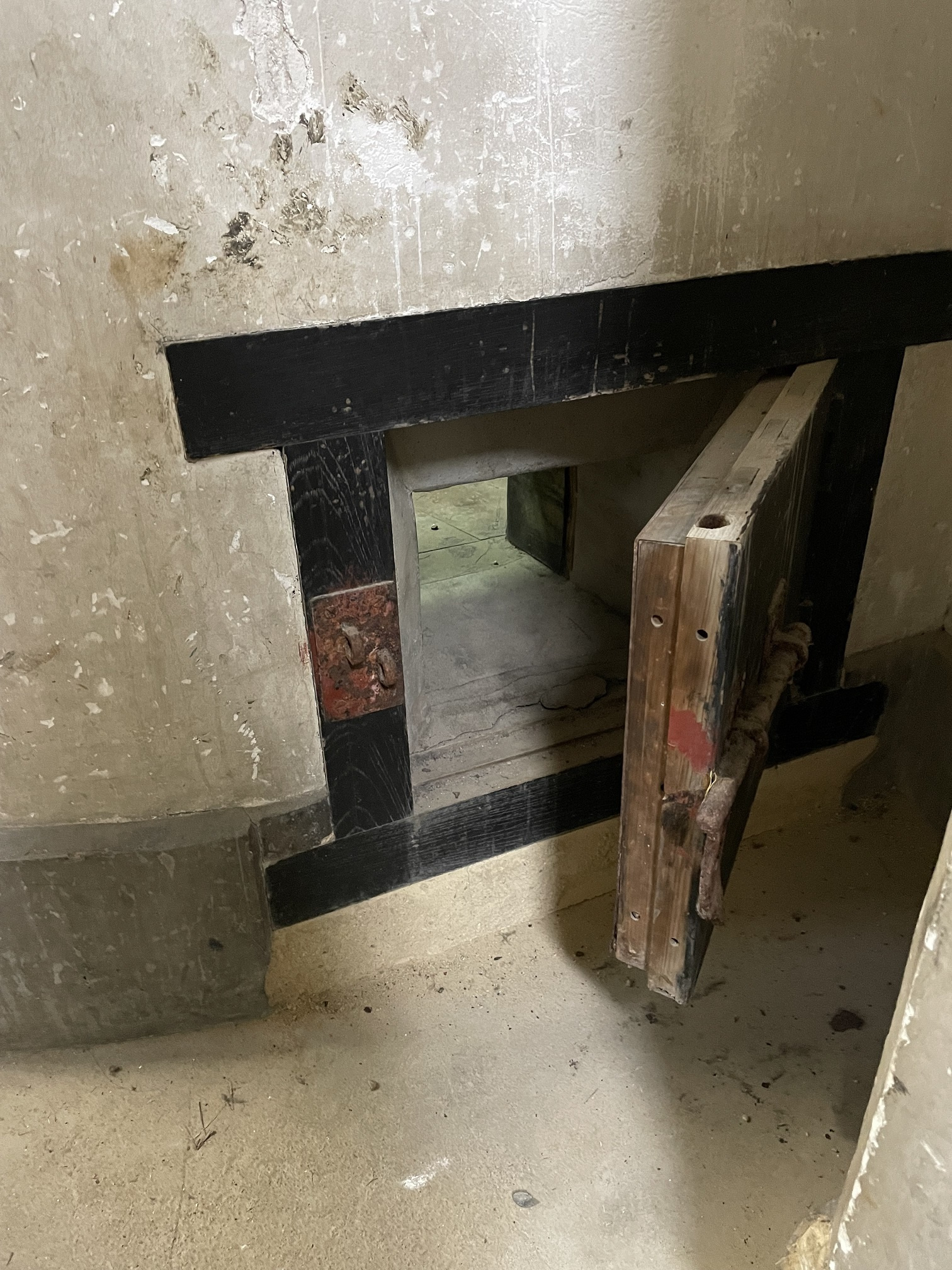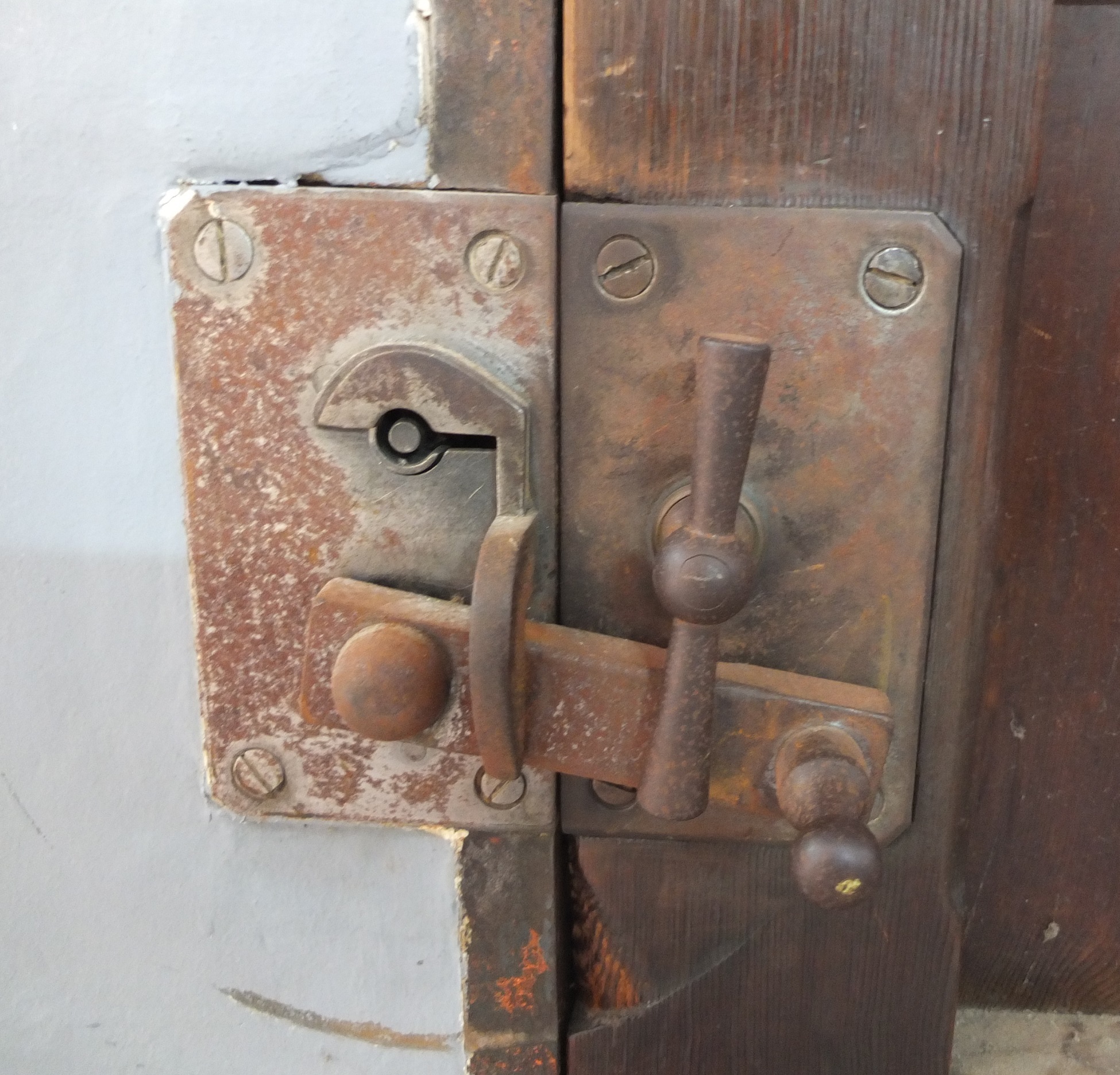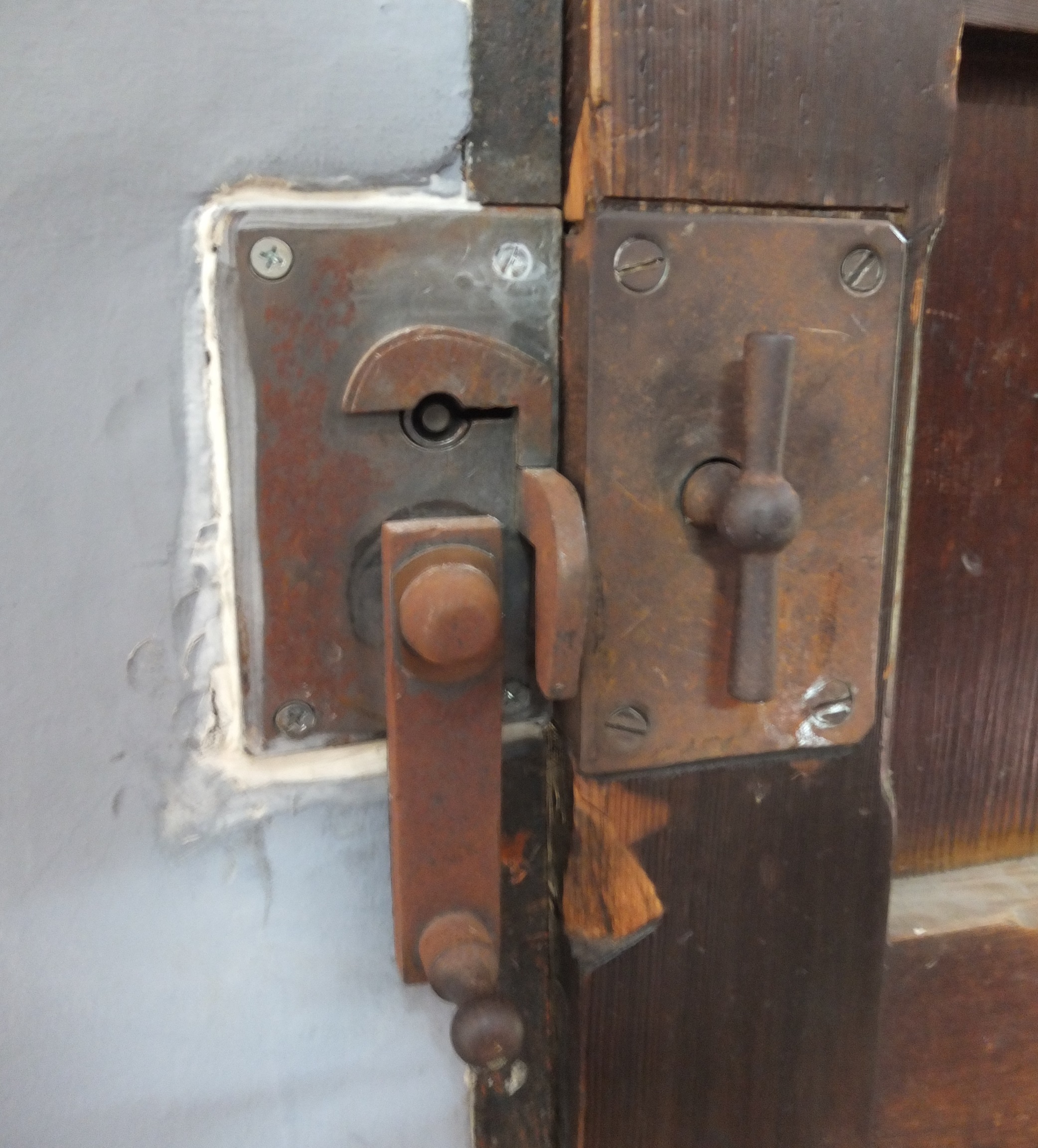 房の扉:無垢の分厚い板で作られている。改修で室内側に鉄板が張られたものもあった。