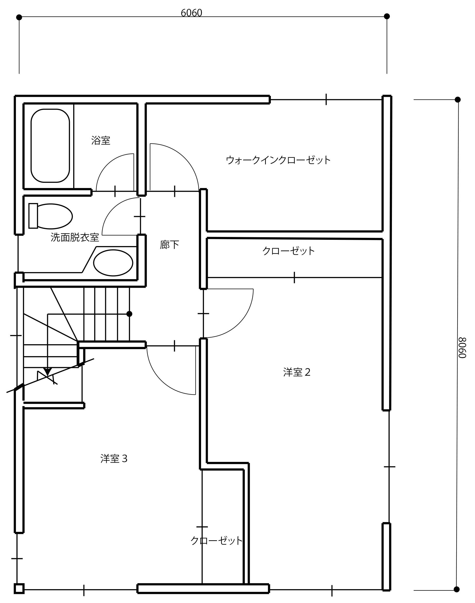 南側の個室は将来2部屋に区切ることを想定していたような横長の部屋